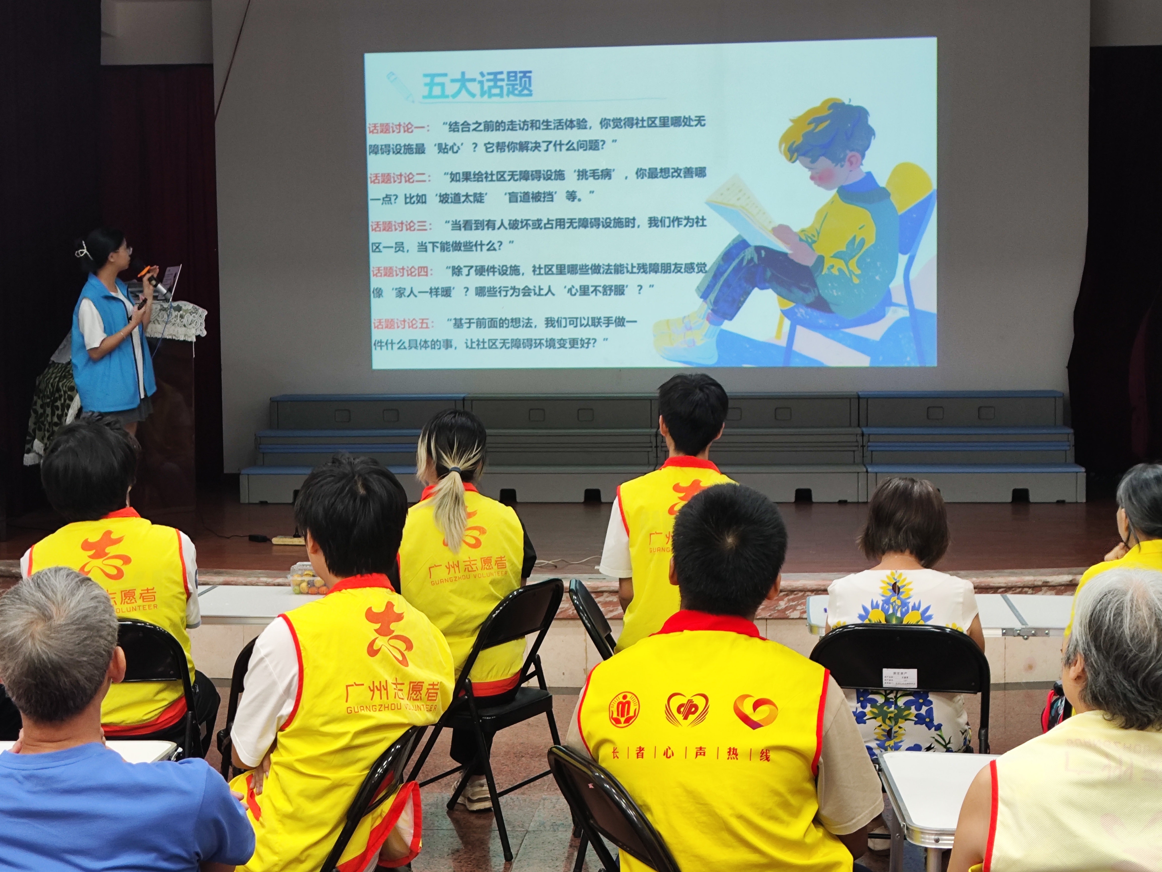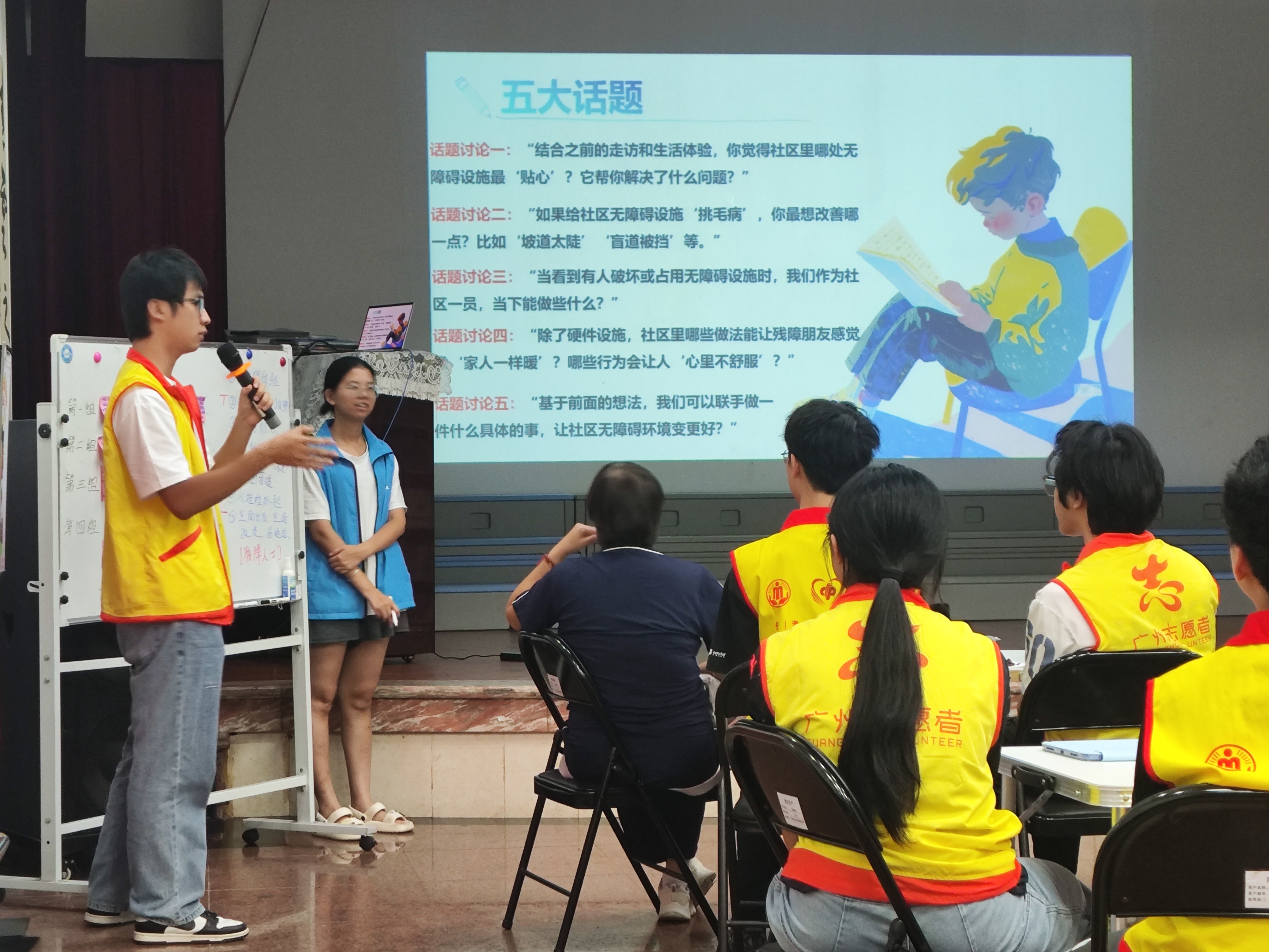 活动伊始,一场轻松有趣的“默契抱团”破冰游戏打破了陌生感,各小组成员在互动中快速熟悉。随后,社工通过短视频展示社区无障碍设施现状与残障人士生活场景,引发参与者共鸣。广东工业大学的青年突击队成员还以PPT形式,结合图文与地图,详细分享了前期对大东街无障碍设施的摸查成果,为后续讨论奠定基础。