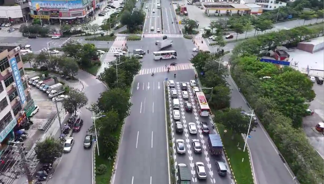 进行第一阶段广深大道绿化树木及管线迁改施工,项目施工范围道路两侧绿化带封闭施工,北侧人行道临时封闭新建通信管沟,南侧人行道及部分道路临时封闭进行给水管改迁。施工完成后,辅路由原来双向四车道改为双向六车道。